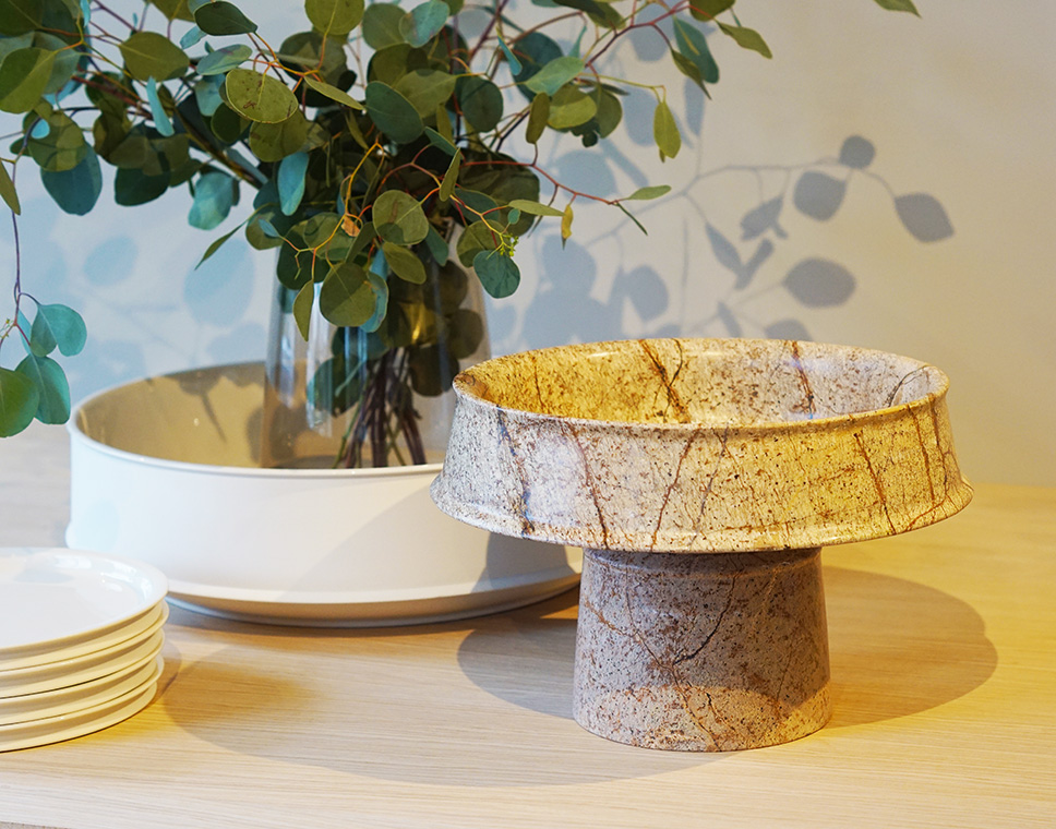 Deze lage kom maakt deel uit van de Dune collectie van Kelly Wearstler, waar authentieke pottenbakkerij tradities samenkomen met hedendaags design. Elk stuk is met zorg gemaakt, met een tweetonige afwerking van matte en hoogglans keramiek. De sculpturale rand voegt een speels en toch verfijnd element toe aan deze unieke collectie.