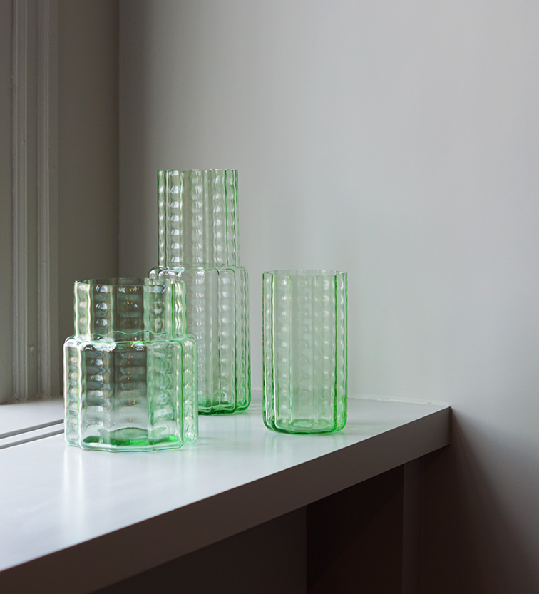 Wave is een collectie mondgeblazen vazen gebaseerd op de grote glaspartijen van het MAS. Deze glaspartijen zijn in Rubens ogen een subliem staaltje kunst en belichamen als geen ander de schoonheid van het materiaal en de oneindige toepassing hiervan. Door de uitgesproken vorm en textuur/structuur koos hij voor een eerlijke, subtiele kleur: een zeer licht groen. Op die manier blijven de vorm en het materiaal primeren.